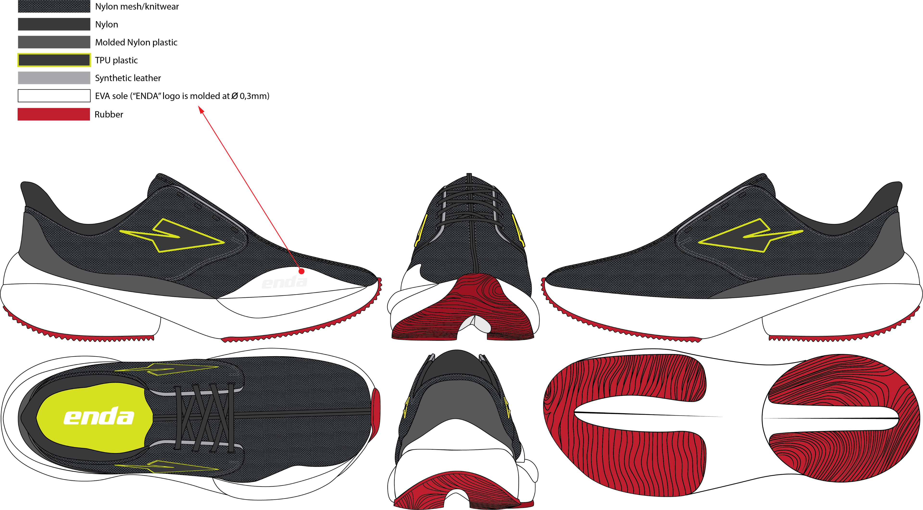 Enda is proud to be Africa's first performance footwear and sportswear brand. Our mission is to create high-quality shoes and clothing that are both sustainable and ethical.We cater to those who are constantly on the go—the active, the dreamers, the revolutionaries, and the unsung heroes. Enda is for those in relentless pursuit of greatness.HARAMBEE SPIRITEnda was founded with a mission to bring Kenyan athletic greatness to runners everywhere and to fuel economic development in Kenya.As an addition to Enda's new and growing performance footwear lineup I designed a running shoe concept. This project envisions what an Enda running shoe could be with my vision, following the established design language and signals of Enda released footwear silhouettes.About the concept:I wanted to create running shoes not just for performance, but also for everyday wear. When I think about a casual shoe my mind immediately went to the classic derby shoe. So, I thought what happens if I transform a derby shoe into a running shoe. Make it derby but sporty.This was a personal project aimed at refining my 3D modeling and rendering abilities, primarily utilizing Blender. This project was not commissioned by Enda.